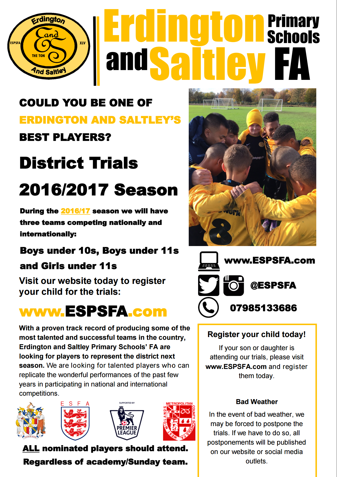 Please complete the trial registration form in order to register your son or daughter for the 2016/17 trials.
