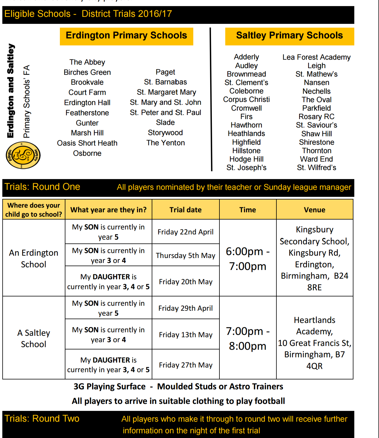 All of the above schools will also be contacted regarding the trials, so your son or daughter should be coming home with a letter during the first week after the school holidays.
