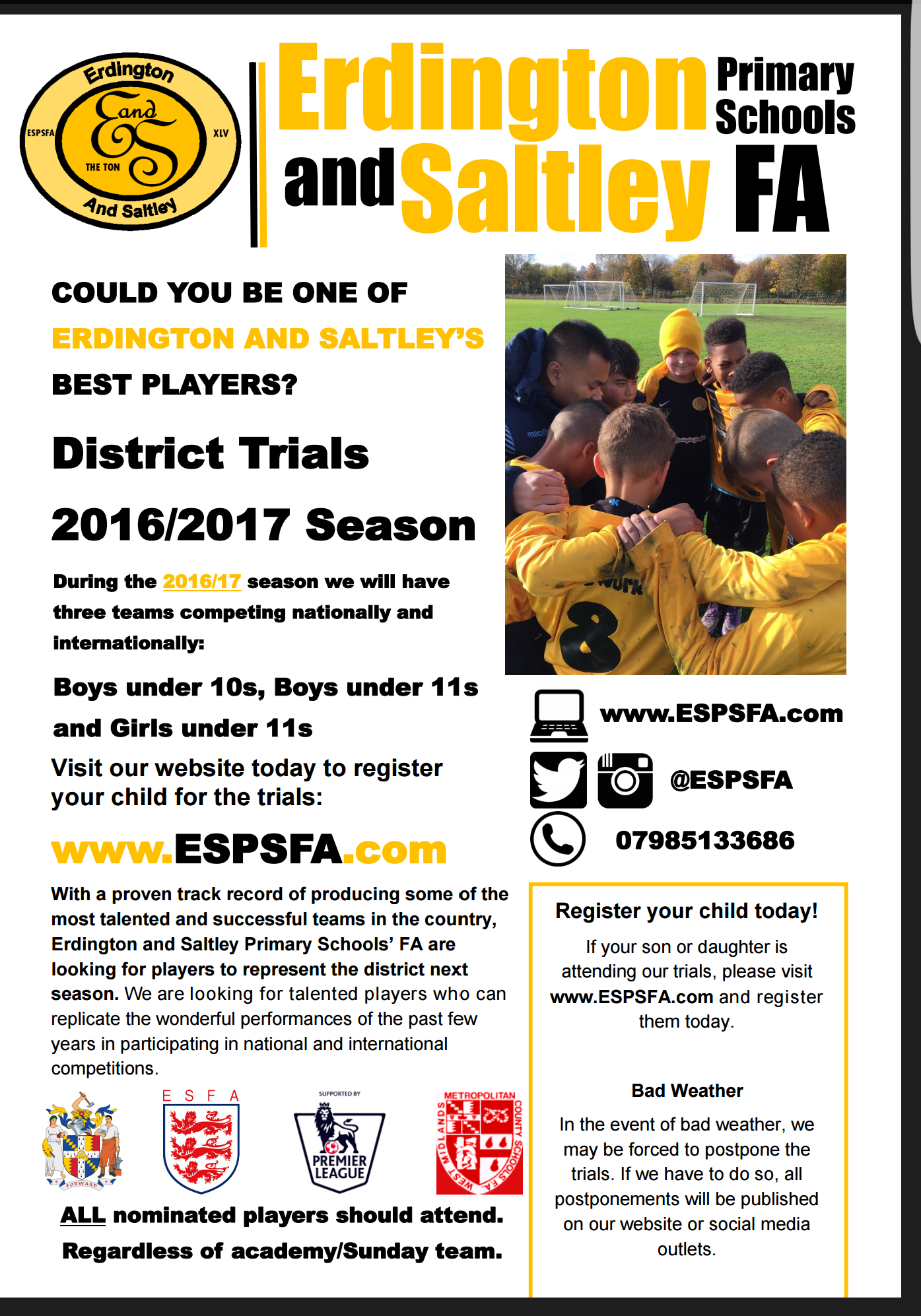 Please complete the trial registration form in order to register your son or daughter for the 2016/17 trials.