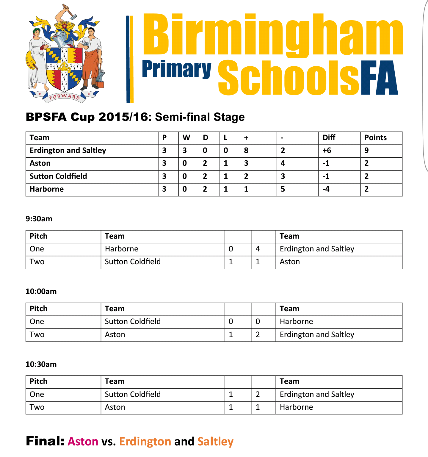 Now it’s on to Bodymoor on Friday for the BPSFA Cup final. After losing to South Birmingham in 2014 and Kings Norton in 2015, the boys will be fully focused on making it third time lucky. If they arrive to that game with the team spirit and application that they showed today, they’ll give themselves a great chance of doing just that.