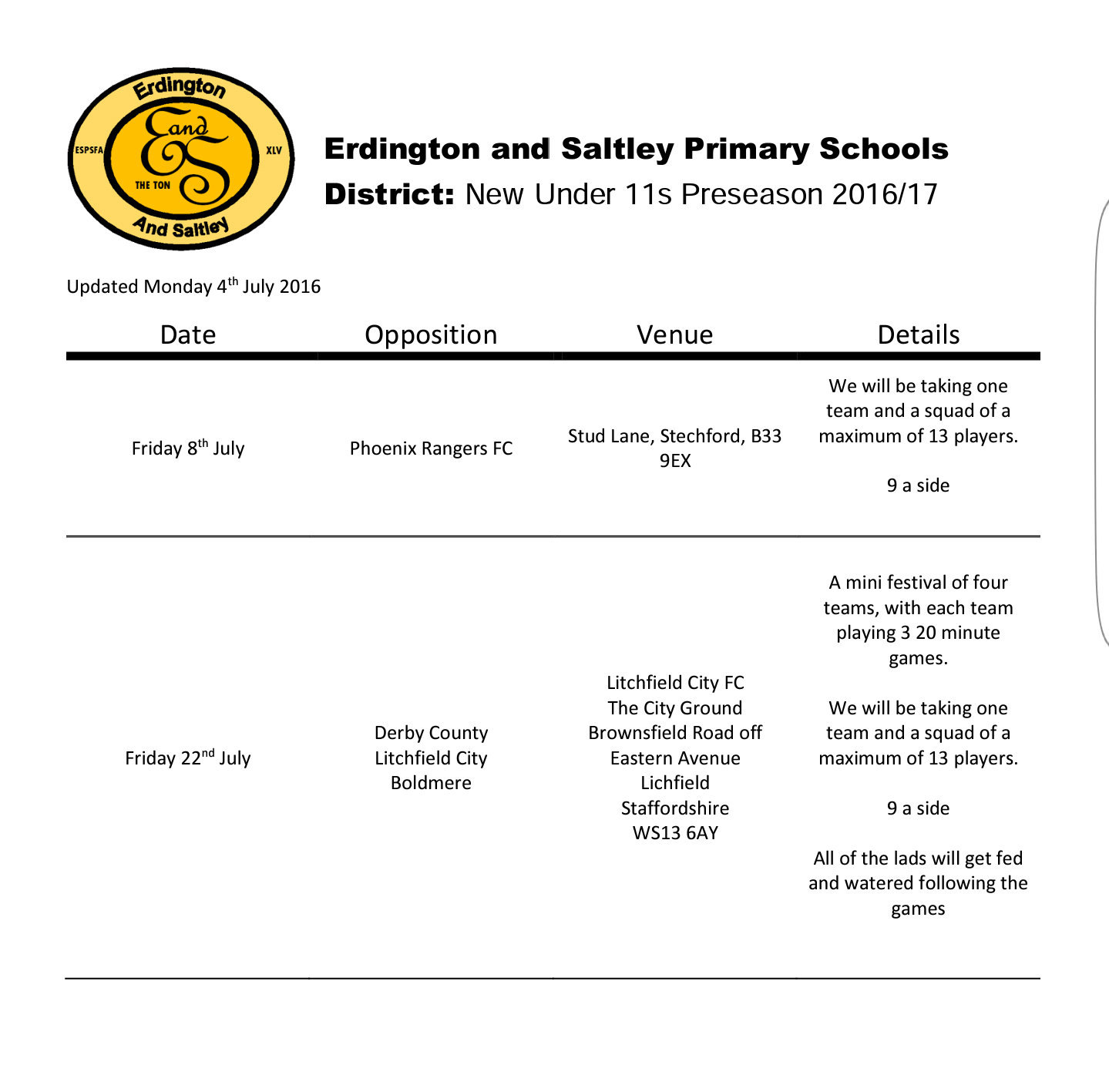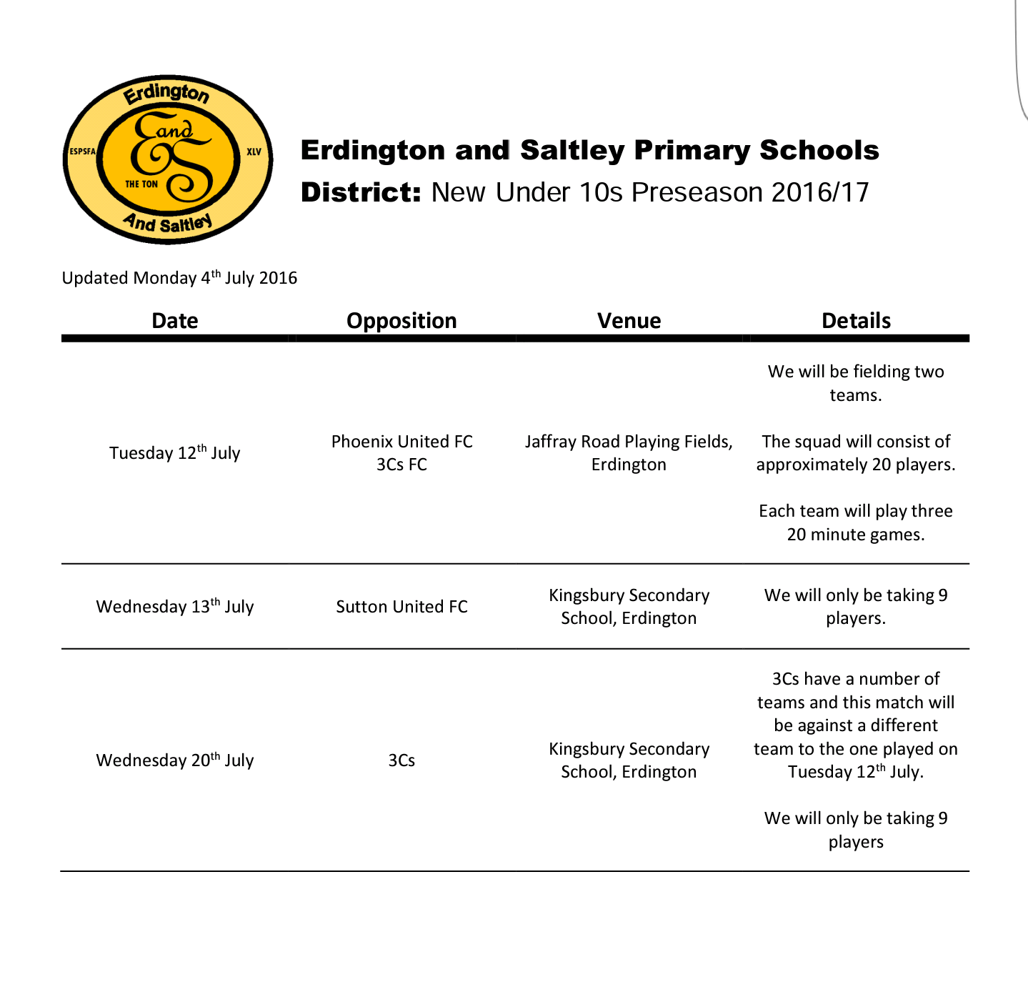 Both the 2016/17 under 10s and under 11s will play a number of games between now and September, as well as training several times. A few games have already been confirmed and and are listed below.