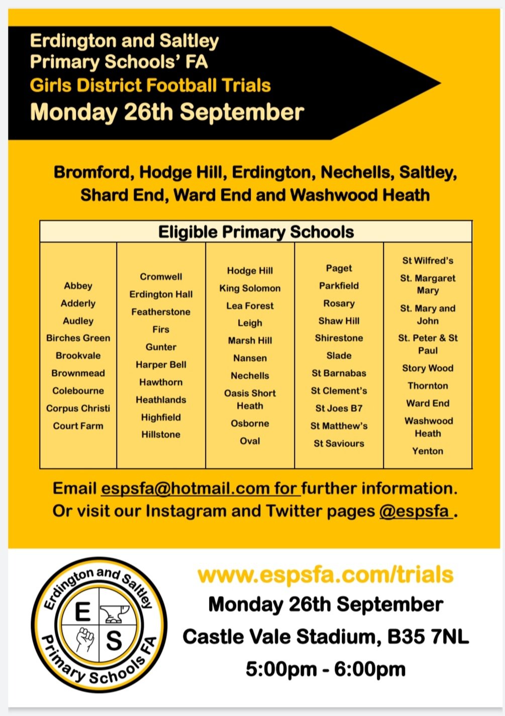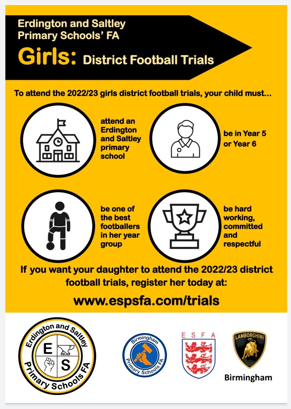If you would like your son or daughter to be part of the Erdington and Saltley district team in 2022/23, please complete the following form: